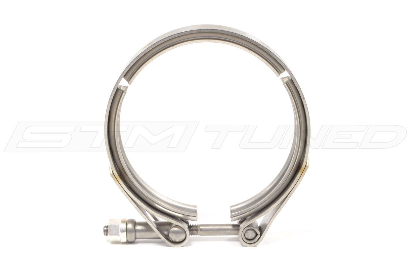 HPT V-band turbine housing inlet and discharge (outlet) clamps. Clamps are available in various sizes to match your specific flanges. Works on v-band inlet and outlet flanges. Confirm specs in the table below.